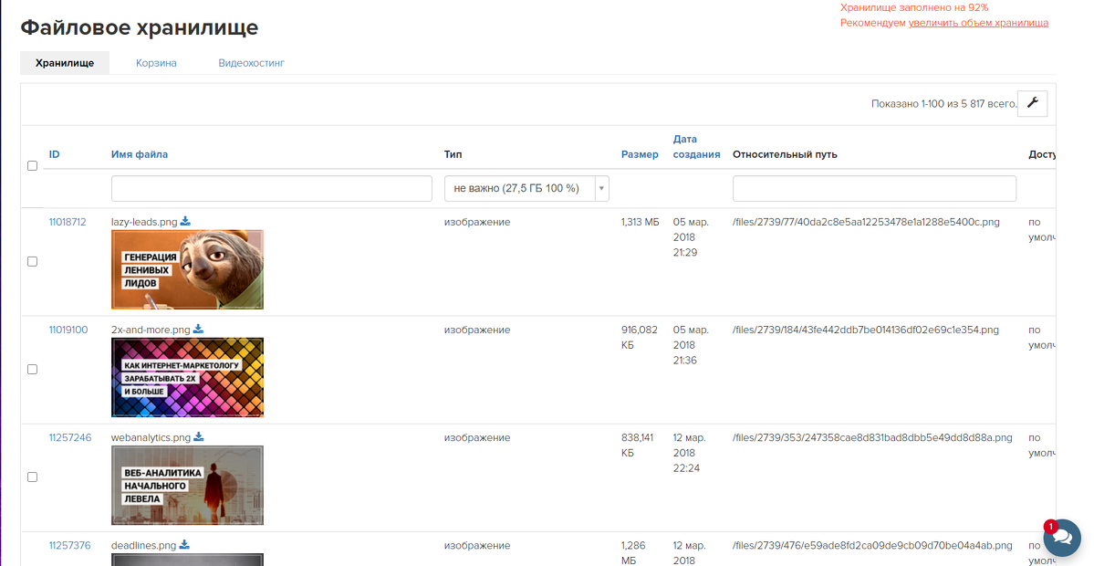 Этот скрипт добавляет в Файловое хранилище эскизы картинок и небольшой плеер для предпросмотра видео-файлов.