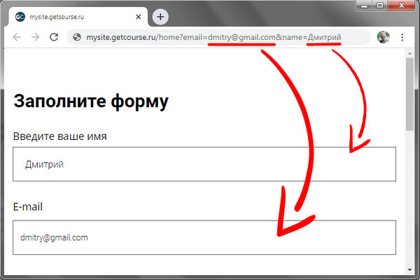 Пример ссылки с GET-параметрами: http:// site.ru/page.php**?name=Ruslan&email=name@mail.ru**