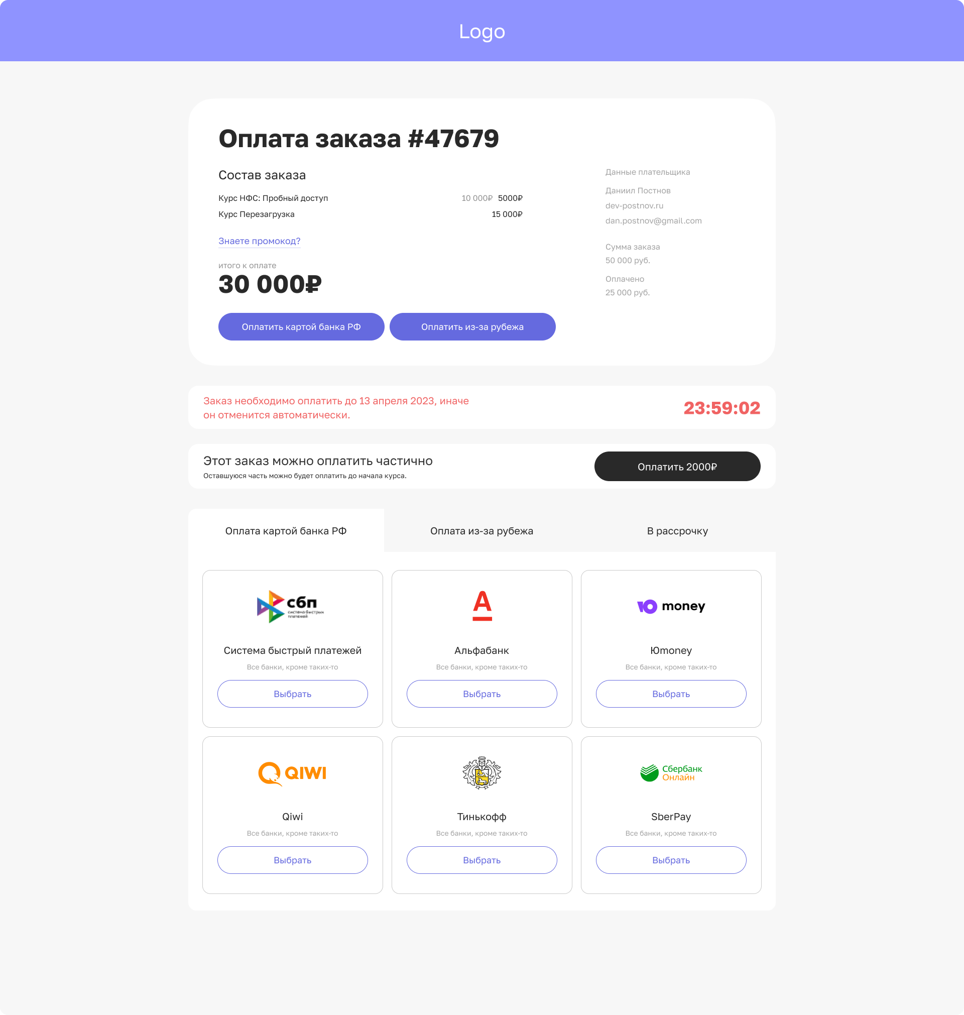 - Проработаны все методы оплат. Добавлены актуальные логотипы патёжных систем, и их вид приведен к единому стилю.