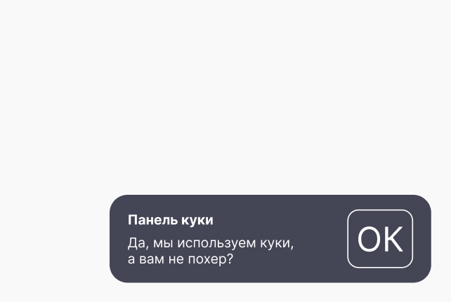 Скрипт добавляет панель куки. Вы можете редактировать текст внутри панели через редактор текстового блока геткурса.